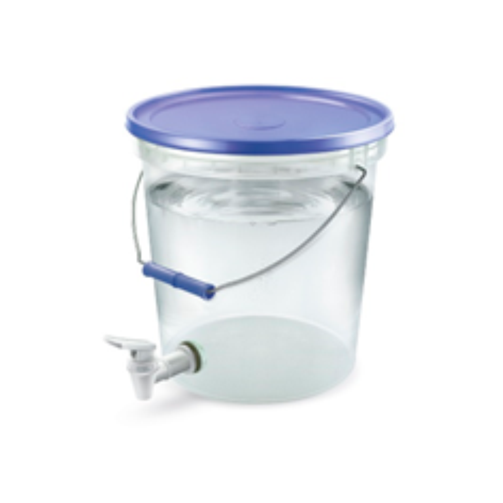 Envase plástico resistente para líquidos, con caño reforzado, medidor en litros y galones, fácil de transportar gracias a su asa de metal y cierre hermético. Libre de BPA. Marca: Polinplast