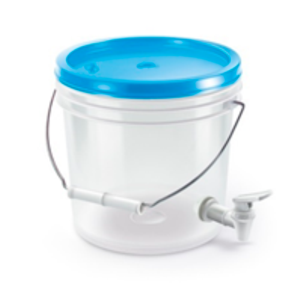 Envase plástico resistente para líquidos, con medidor en litros y galones, fácil de transportar gracias a su asa de metal y cierre hermético. Libre de BPA. Marca: Polinplast