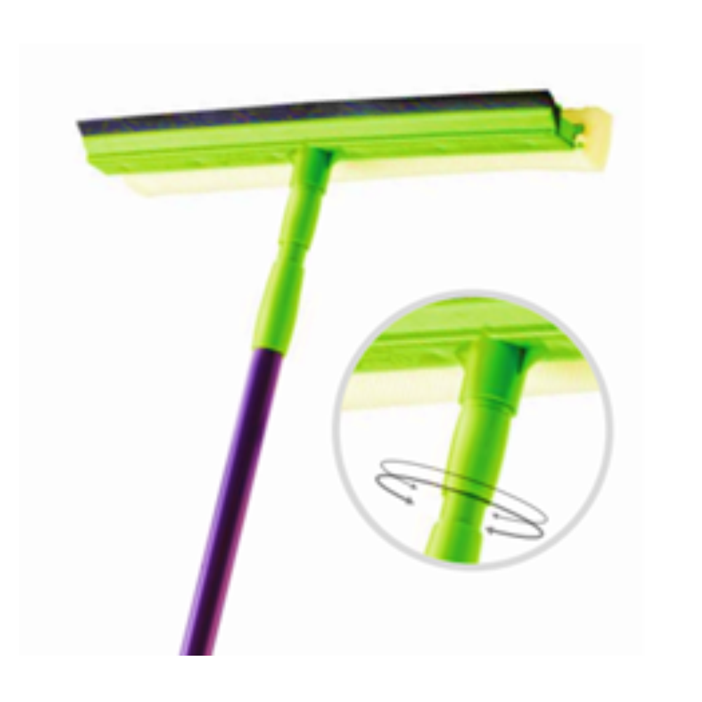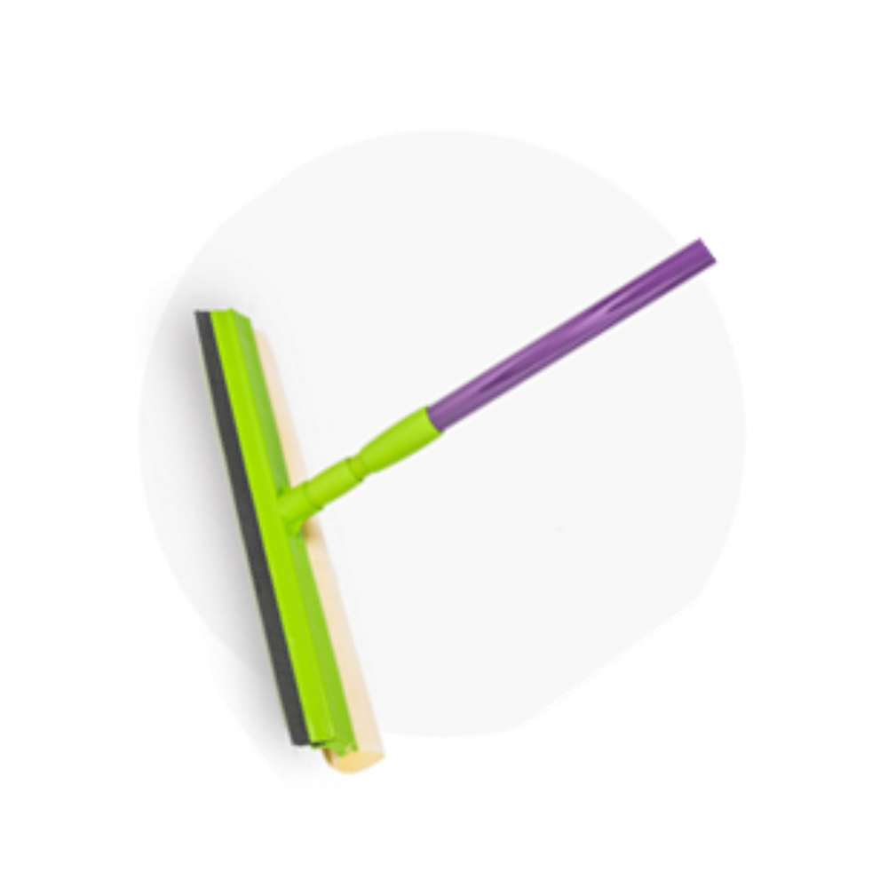 Con esponja absorbente y jebe de 40cm, especial para mamparas. Tiene un mango regulable, que crece hasta 1.50mts.