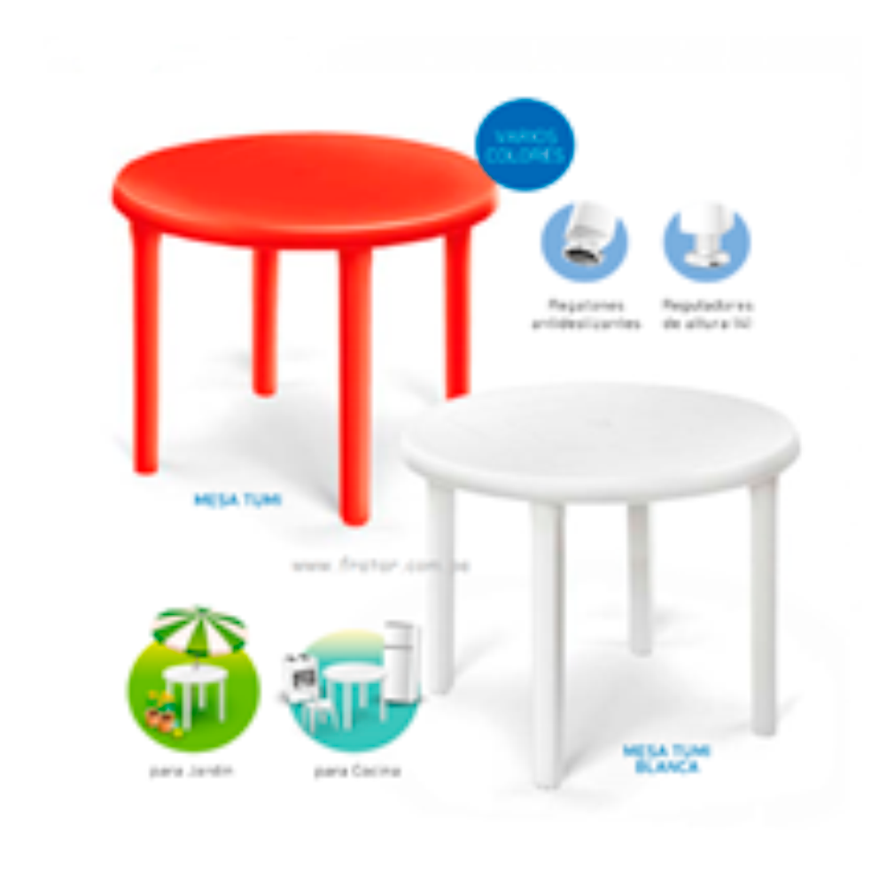 Mesa práctica de 4 patas de forma cuadrada, liviana y de fácil uso de plástico color blanco, incluye regatones antideslizantes de goma en la base de las patas, estas mismas patas son regulables en altura, producto viene con protección UV. Marca: Polinplast