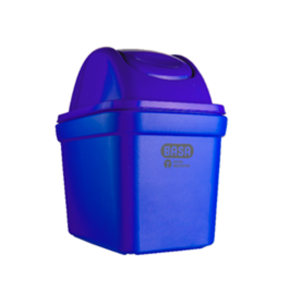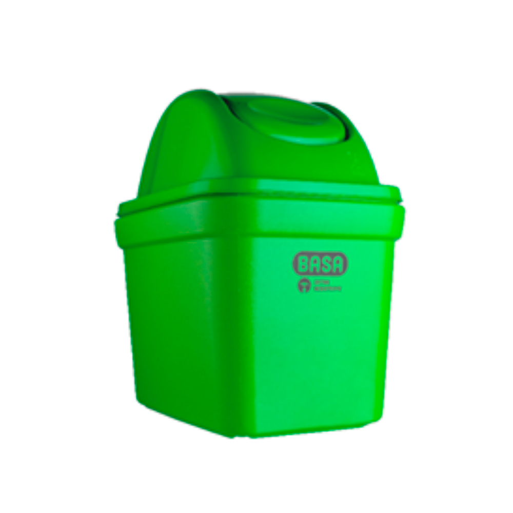 - Papelera rectangular de 18 litros de capacidad con tapa de sistema vaivén.