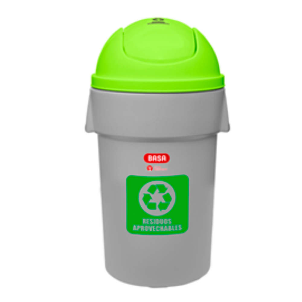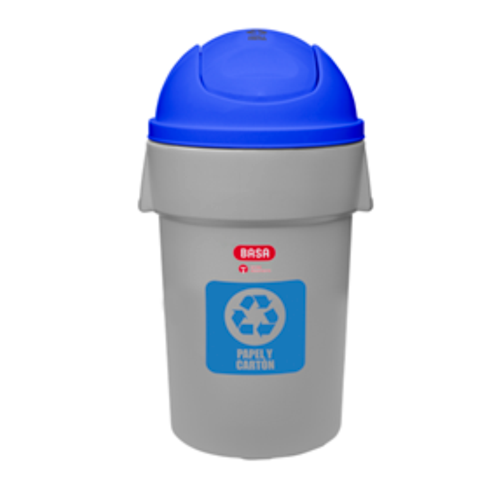 - Papelera redonda de 70 litros de capacidad con tapa vaivén para facilitar su uso. Viene en 8 colores diferenciados para la segregación correcta de los desechos (vidrio, papel, metales, plásticos,residuos generales, no aprovechables, aprovechables) dada por la Norma