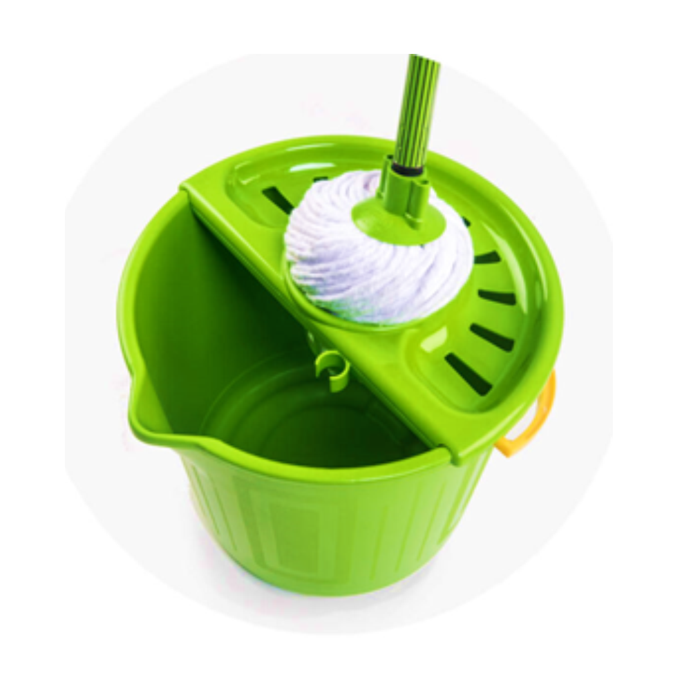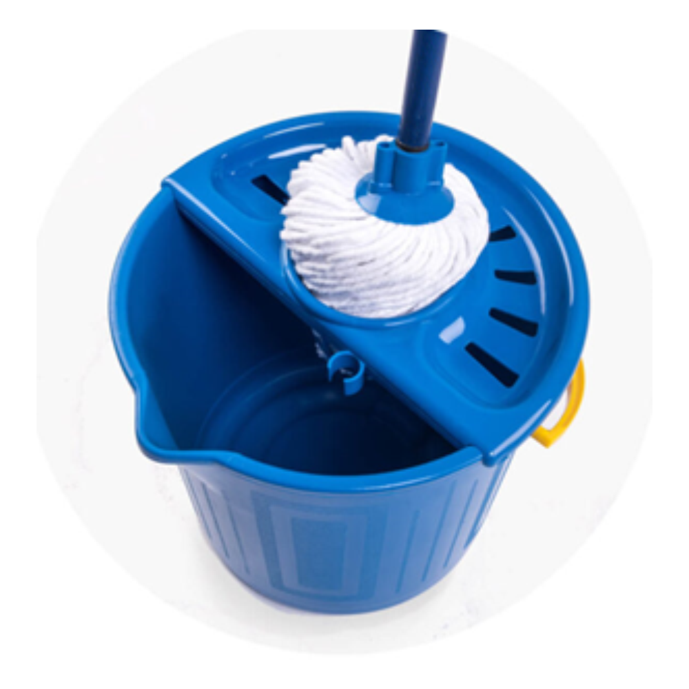 Completo set de limpieza multiusos de 4 piezas: Balde, escurridor, trapeador y palo. 17 L de capacidad. Marca: Hude